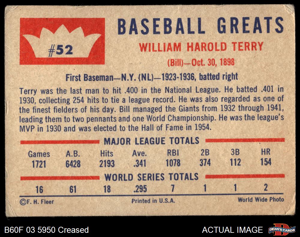 1960 Fleer #52 Bill Terry 2 - GOOD