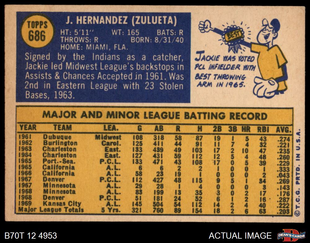 1970 Topps #686 Jackie Hernandez 4 - VG/EX