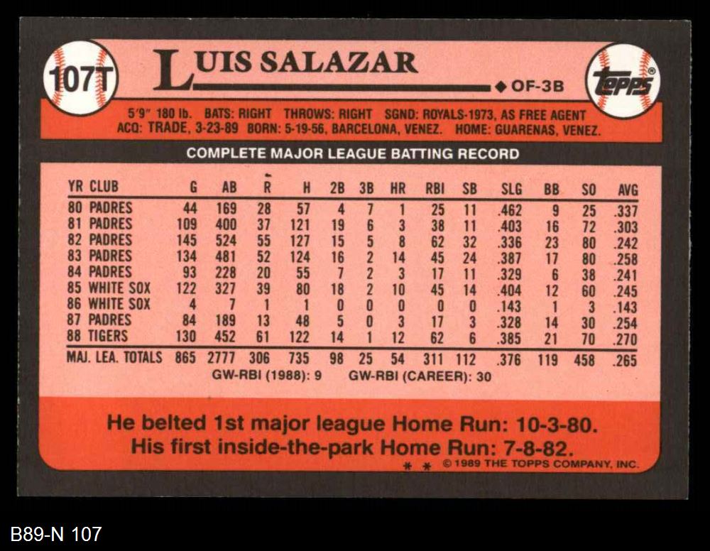 1989 Topps Traded #107 T Luis Salazar 8 - NM/MT