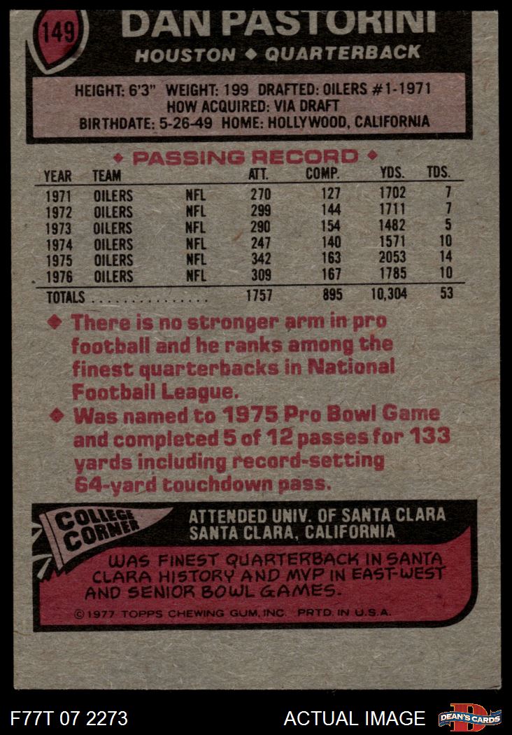 1977 Topps #149 Dan Pastorini 1.5 - FAIR