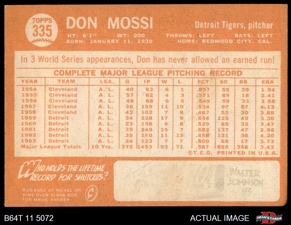 1964 Topps #335 Don Mossi AUTOGRAPHED