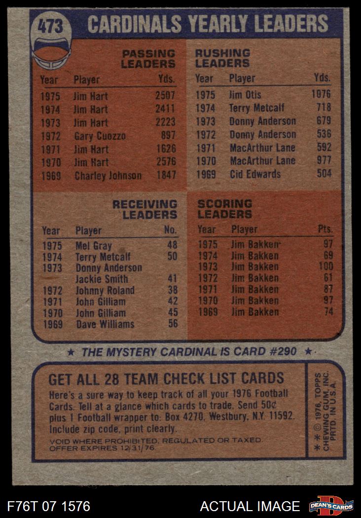 1976 Topps #473 Cardinals Team Checklist 3 - VG