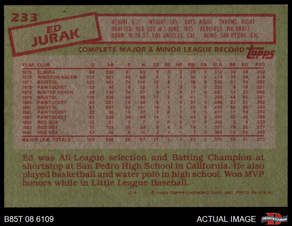 1985 Topps Baseball Cards (11,293 available)1985 Topps Red Sox (399 available)