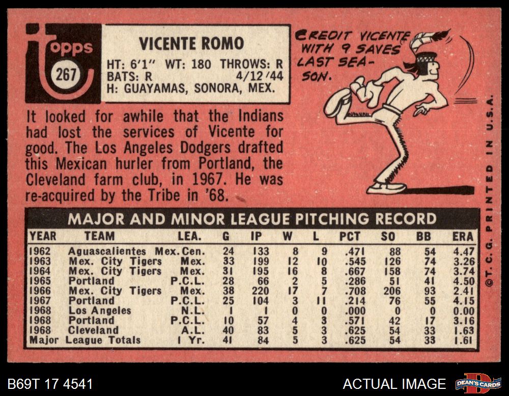 1969 Topps #267 Vincente Romo 6.5 - EX/MT+