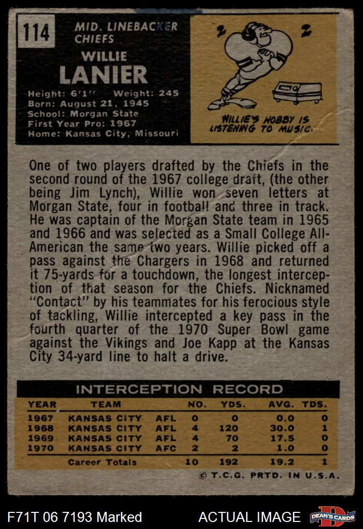 1971 Topps #114 Willie Lanier Front Thumbnail