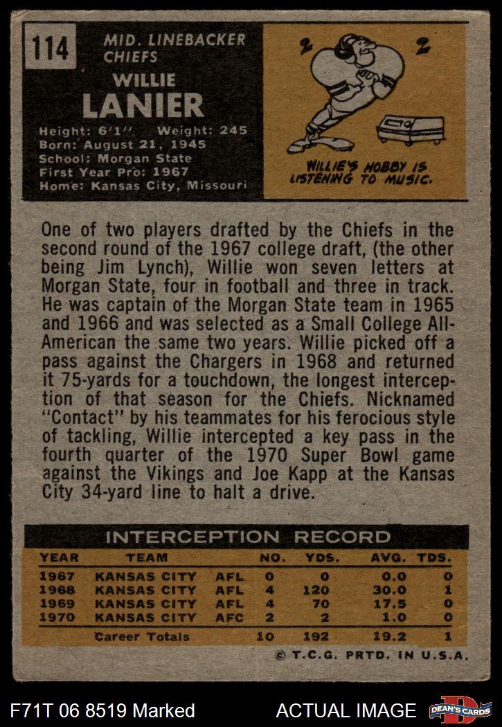 1971 Topps #114 Willie Lanier Front Thumbnail