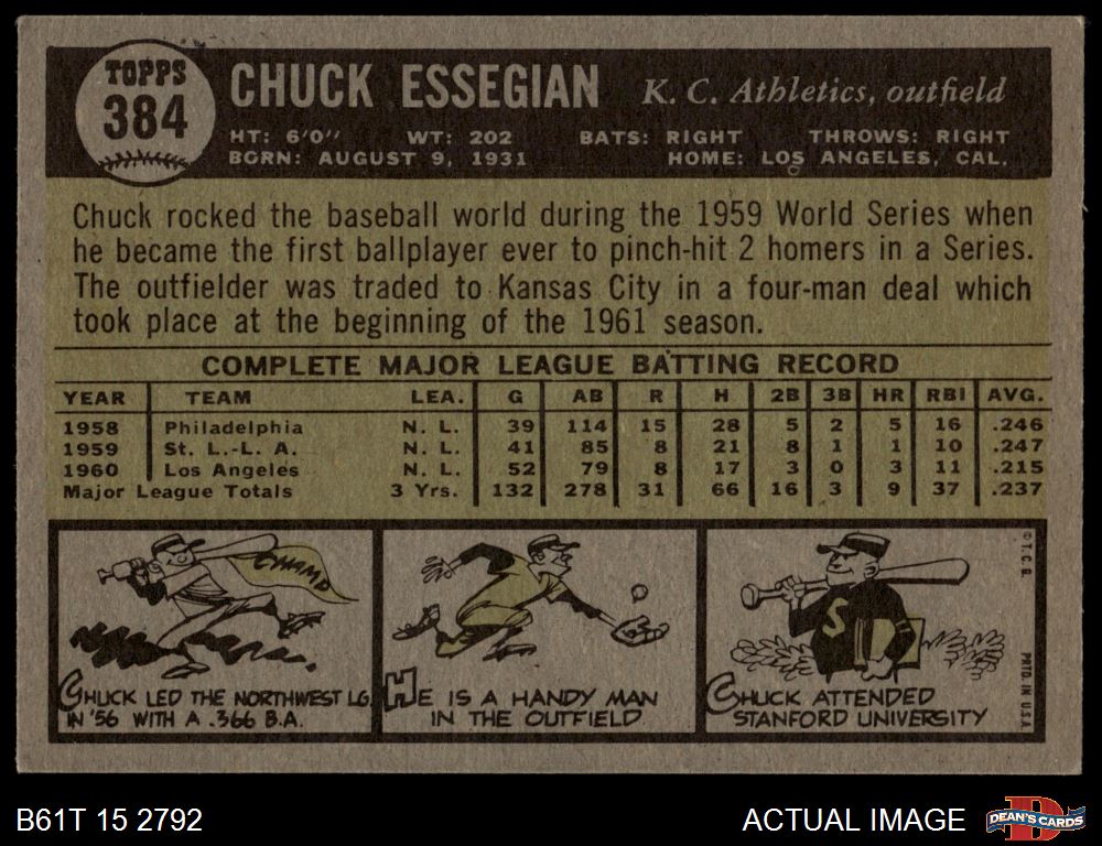 1961 Topps #384 Chuck Essegian 4 - VG/EX