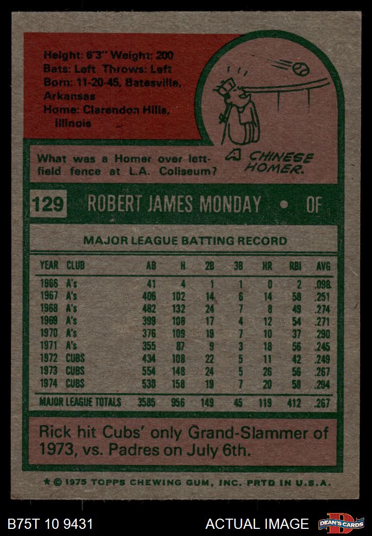 1975 Topps #129 Rick Monday 4 - VG/EX