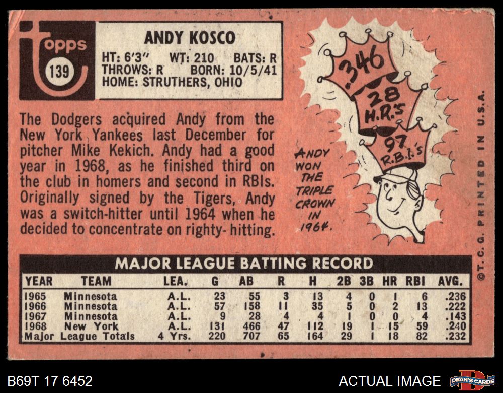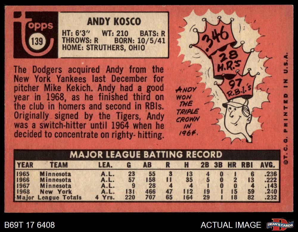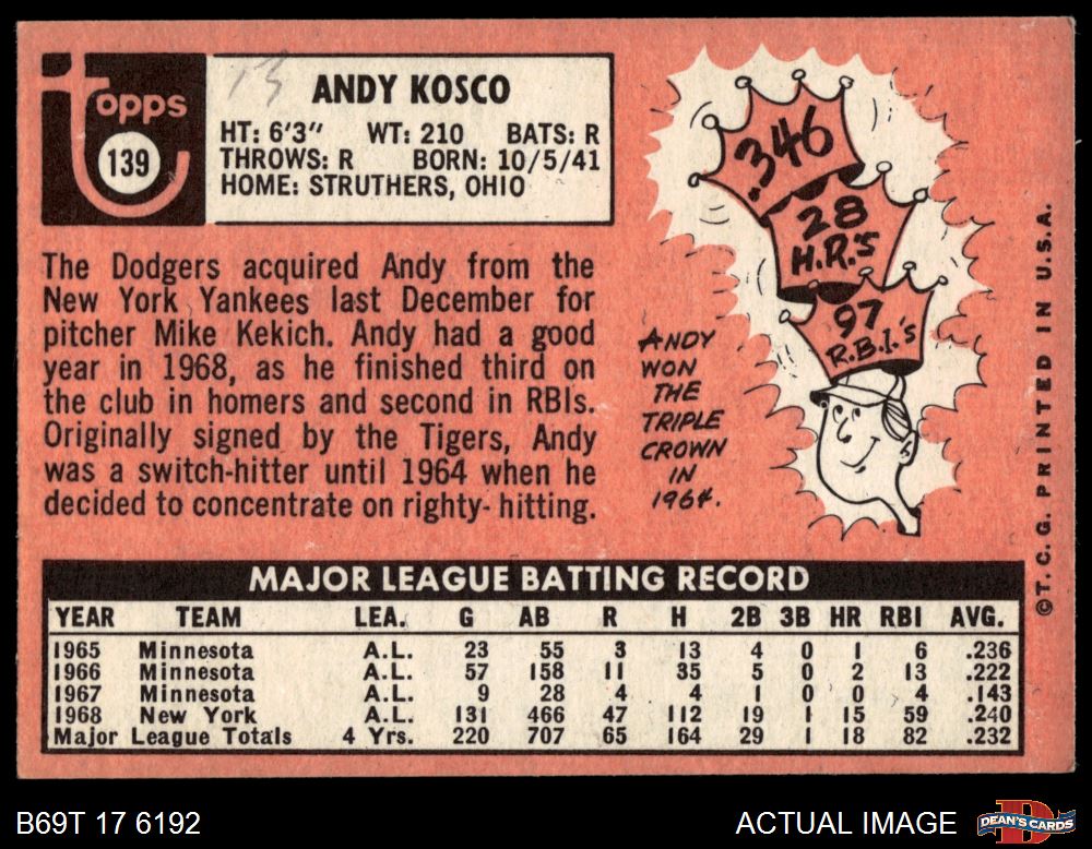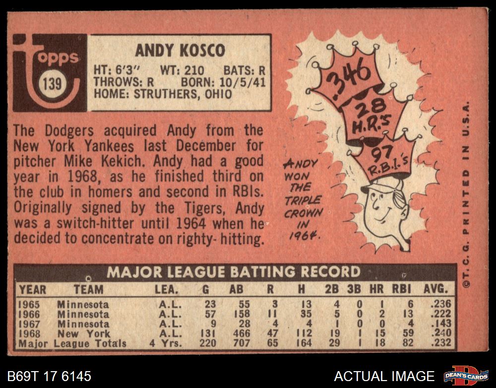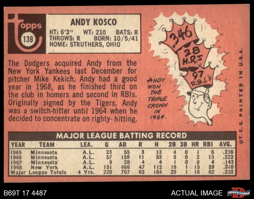 1969 Topps #139 Andy Kosco