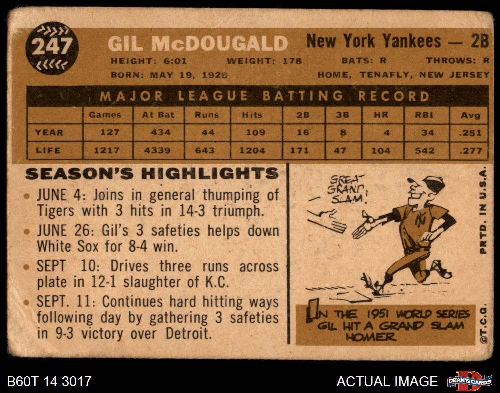 1960 Topps #247 Gil McDougald