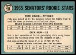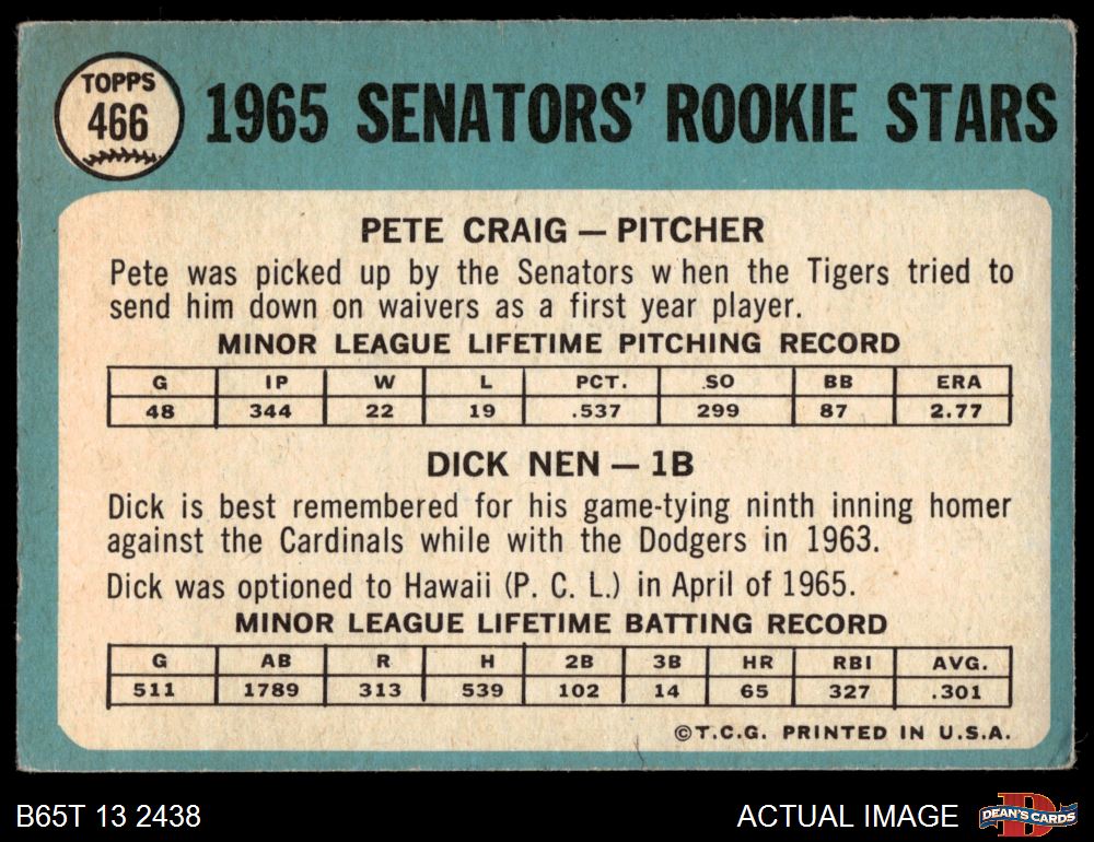 1965 Topps #466 - Pete Craig / Dick Nen Senators Rookies 2 - GOOD