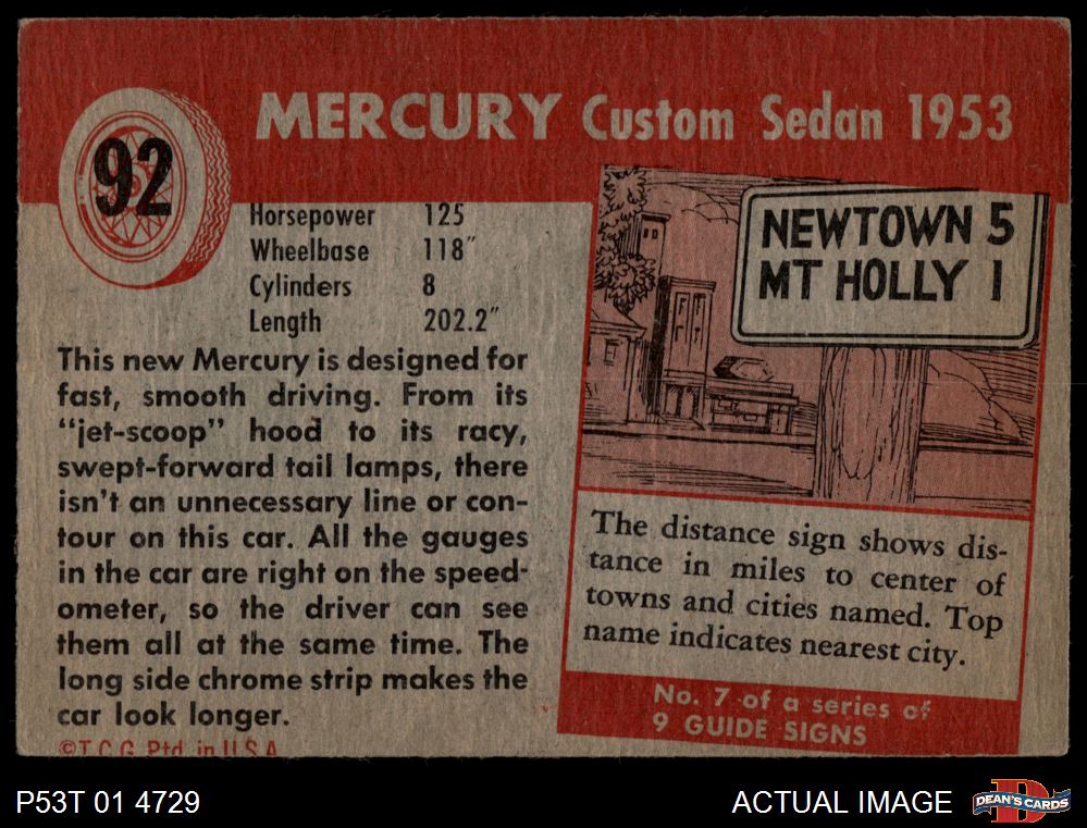 1954 Topps World on Wheels #92 Mercury Custom Sedan 1953 4 - VG/EX