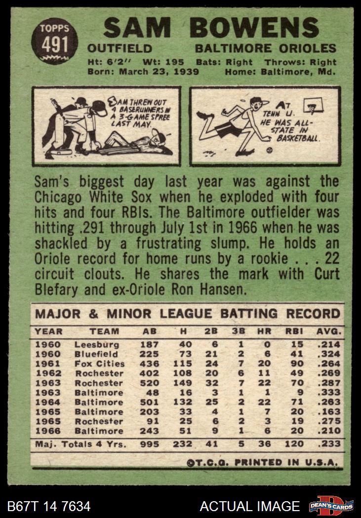 1967 Topps #491 Sam Bowens