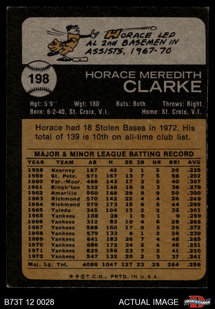 1973 Topps #198 Horace Clarke 4 - VG/EX