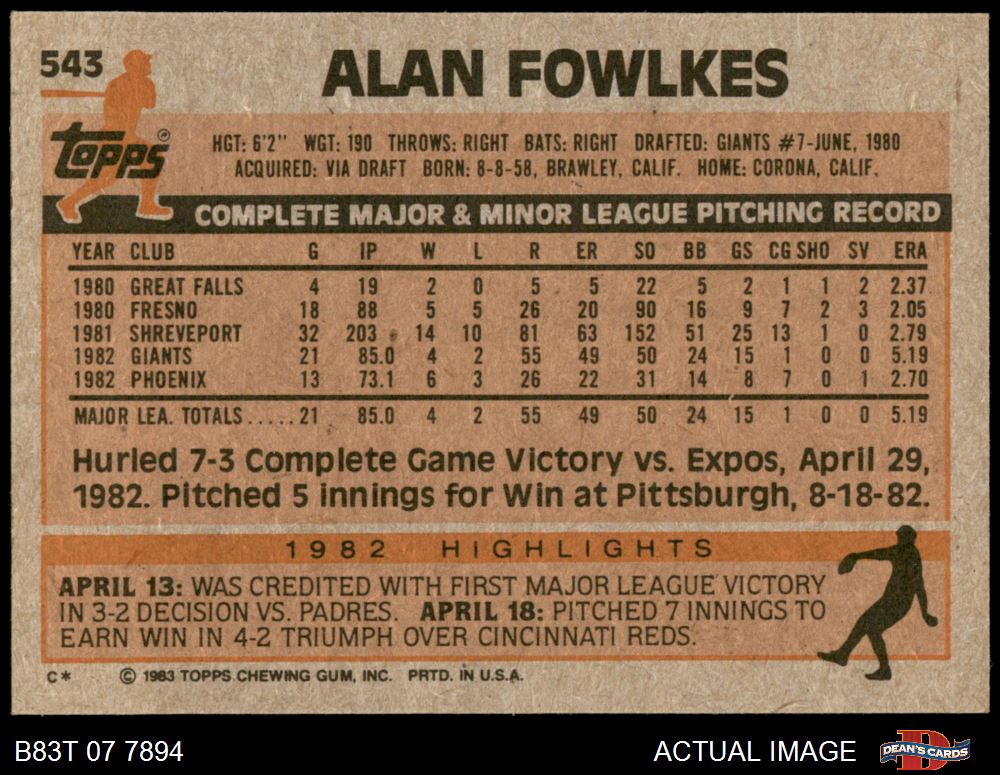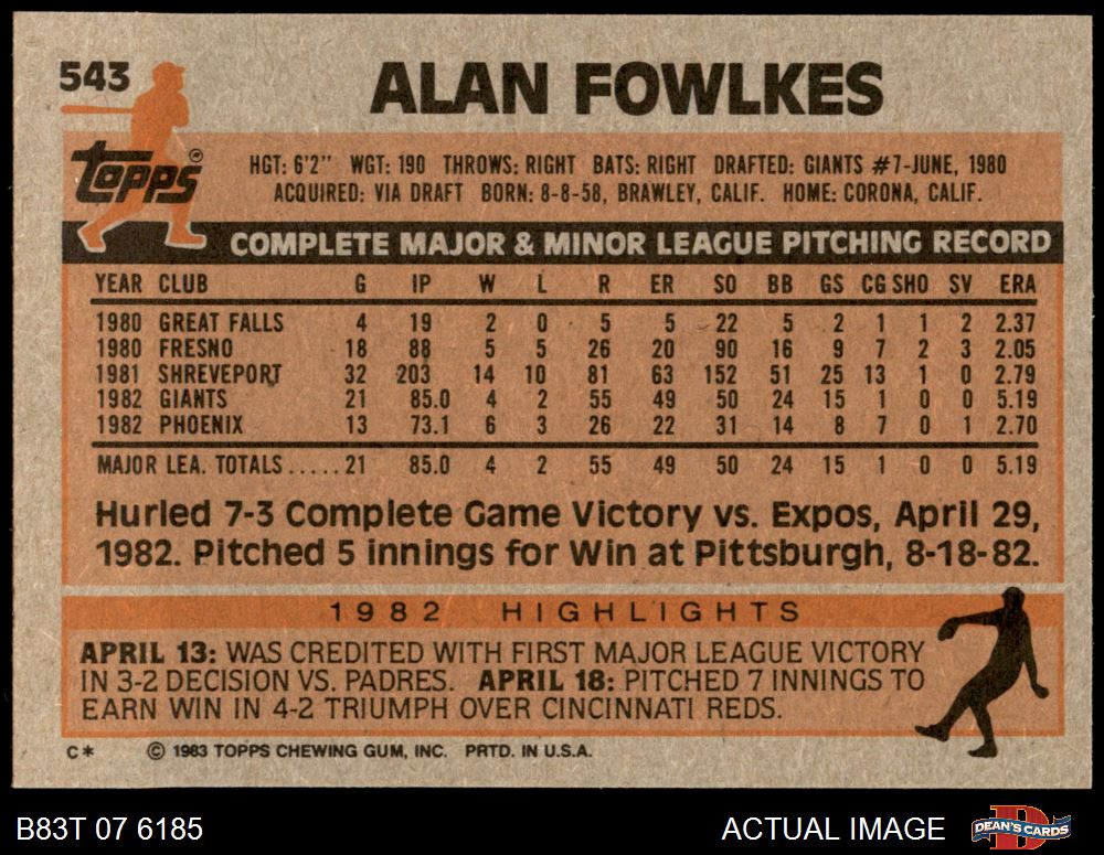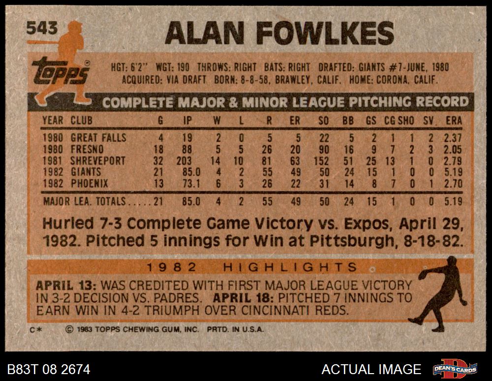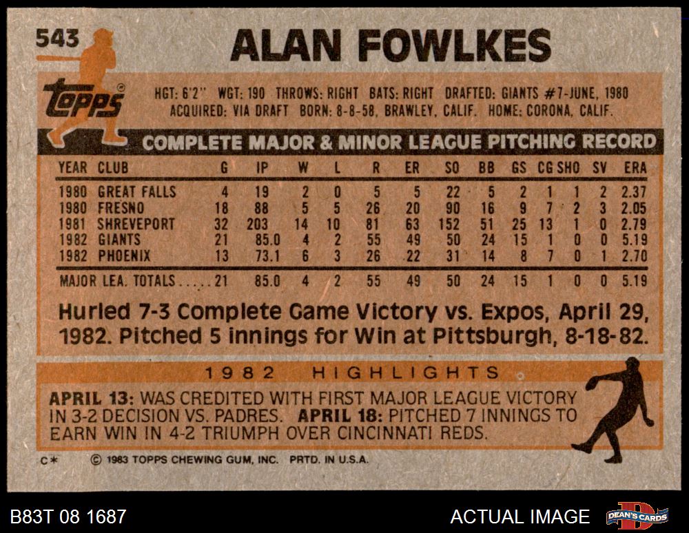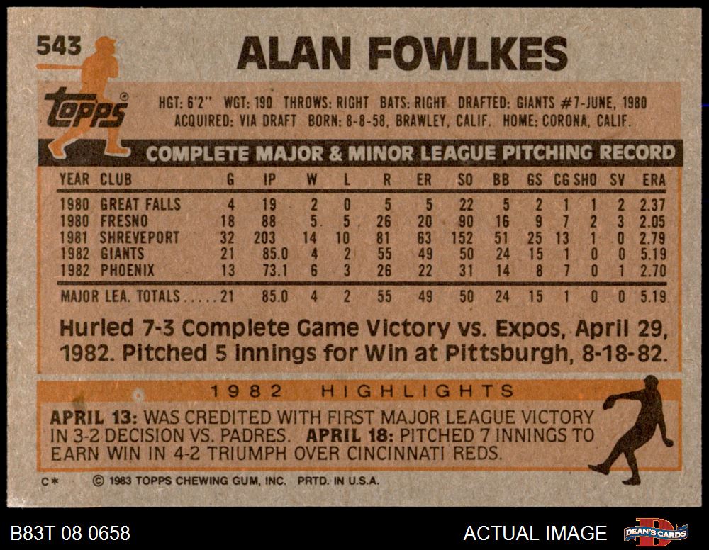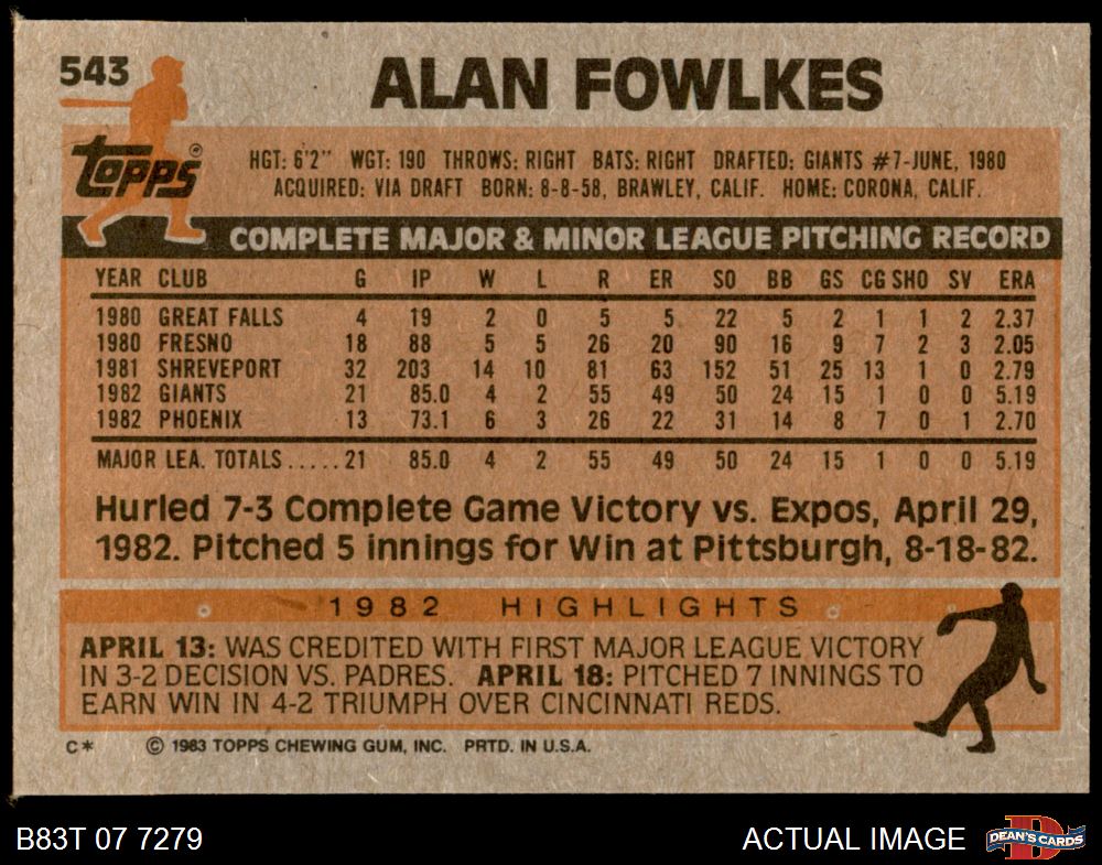 1983 Topps #543 Alan Fowlkes 8 - NM/MT