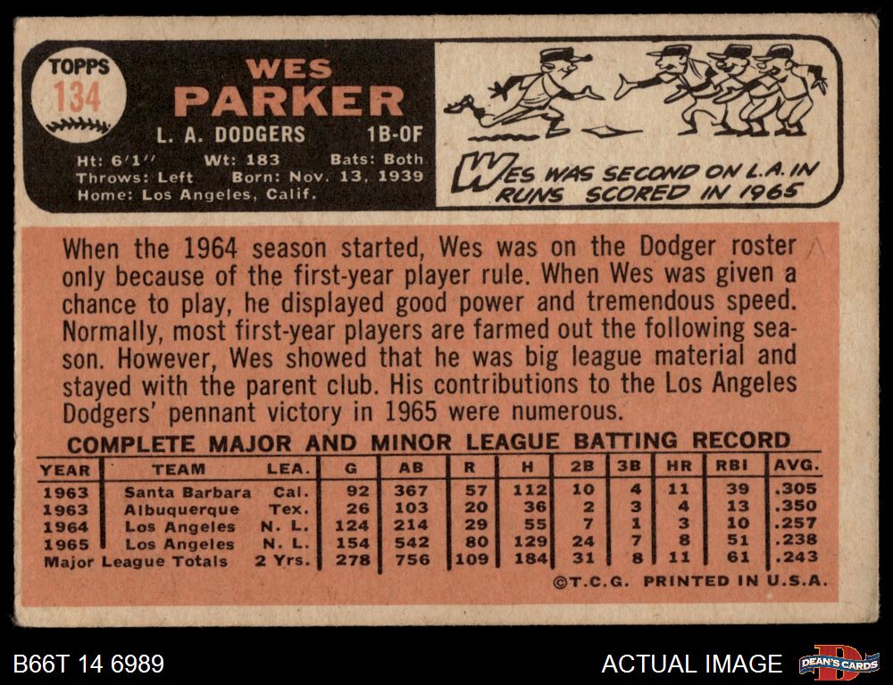 1966 Topps #134 Wes Parker 2 - GOOD