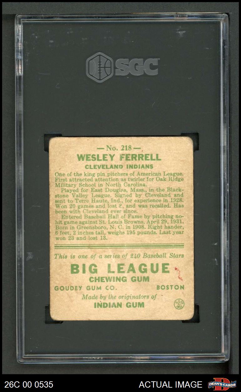 1933 Goudey #218 Wes Ferrell SGC AUTHENTIC