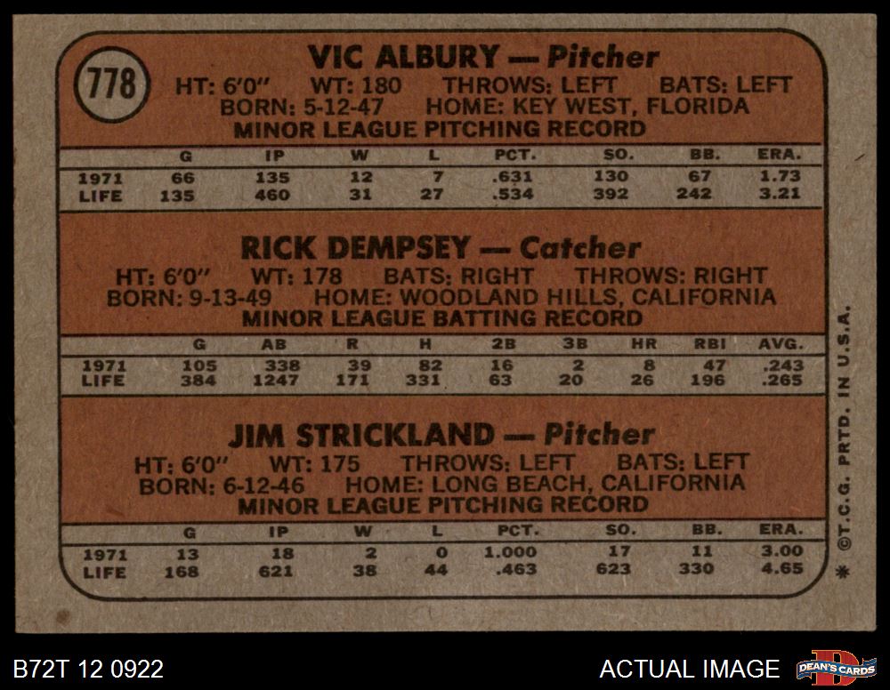 Rick Dempsey / Jim Strickland / Vic Albury (7 available)