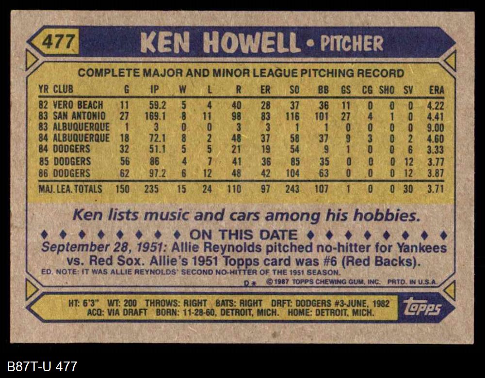 1987 Topps #477 Ken Howell 8 - NM/MT