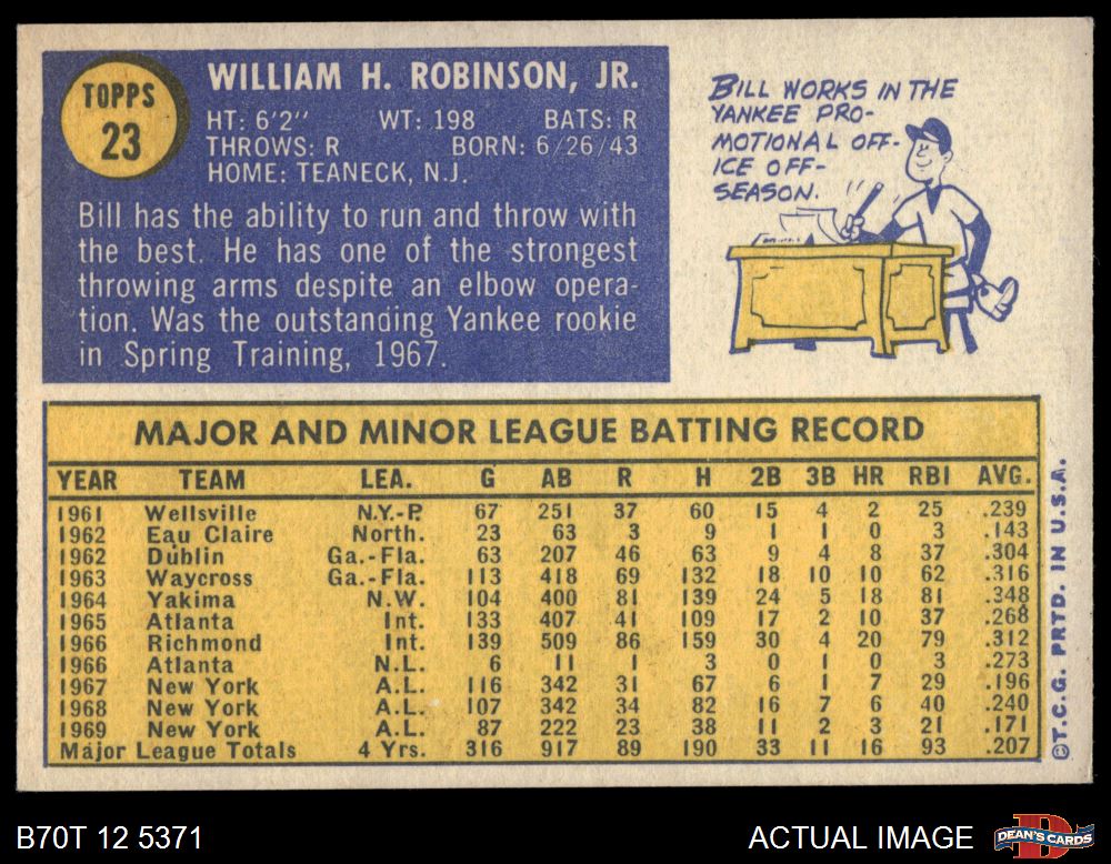 1970 Topps #23 Bill Robinson 6.5 - EX/MT+