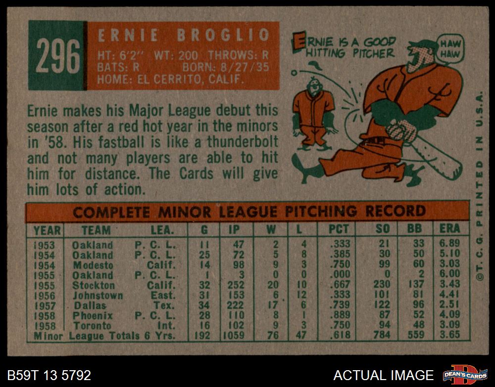 1959 Topps #296 Ernie Broglio 6 - EX/MT