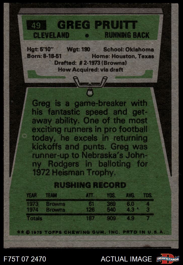 1975 Topps #49 Greg Pruitt 3 - VG