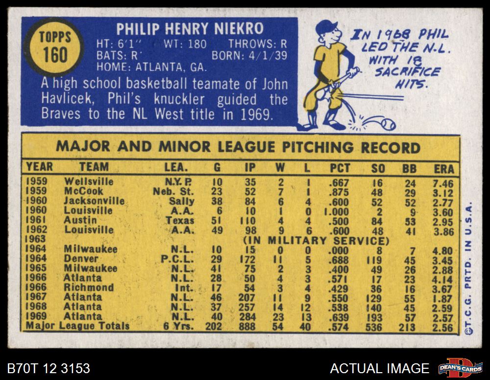 1970 Topps #160 Phil Niekro 4 - VG/EX