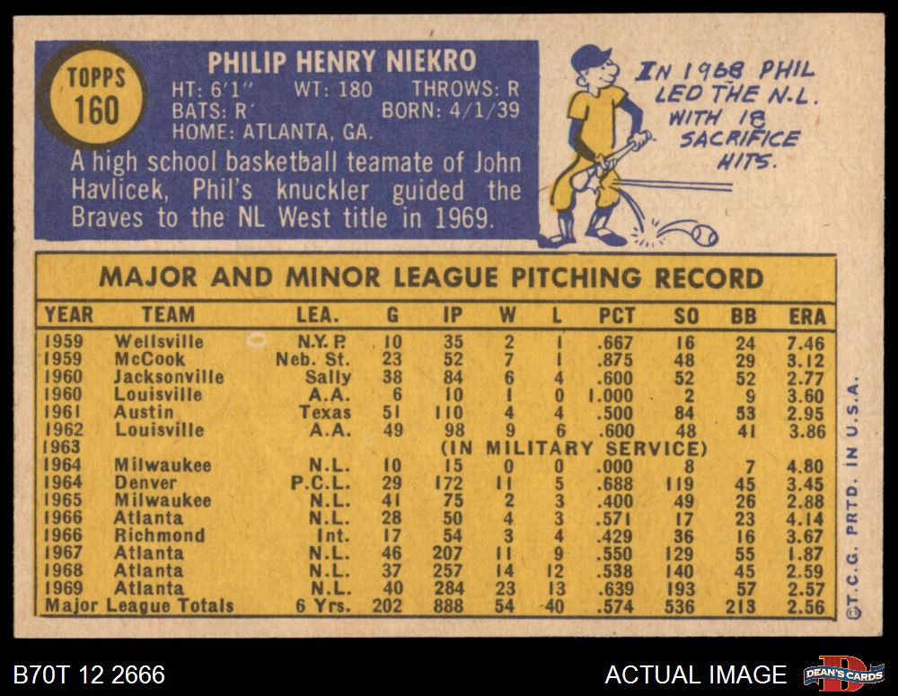 1970 Topps #160 Phil Niekro 7 - NM