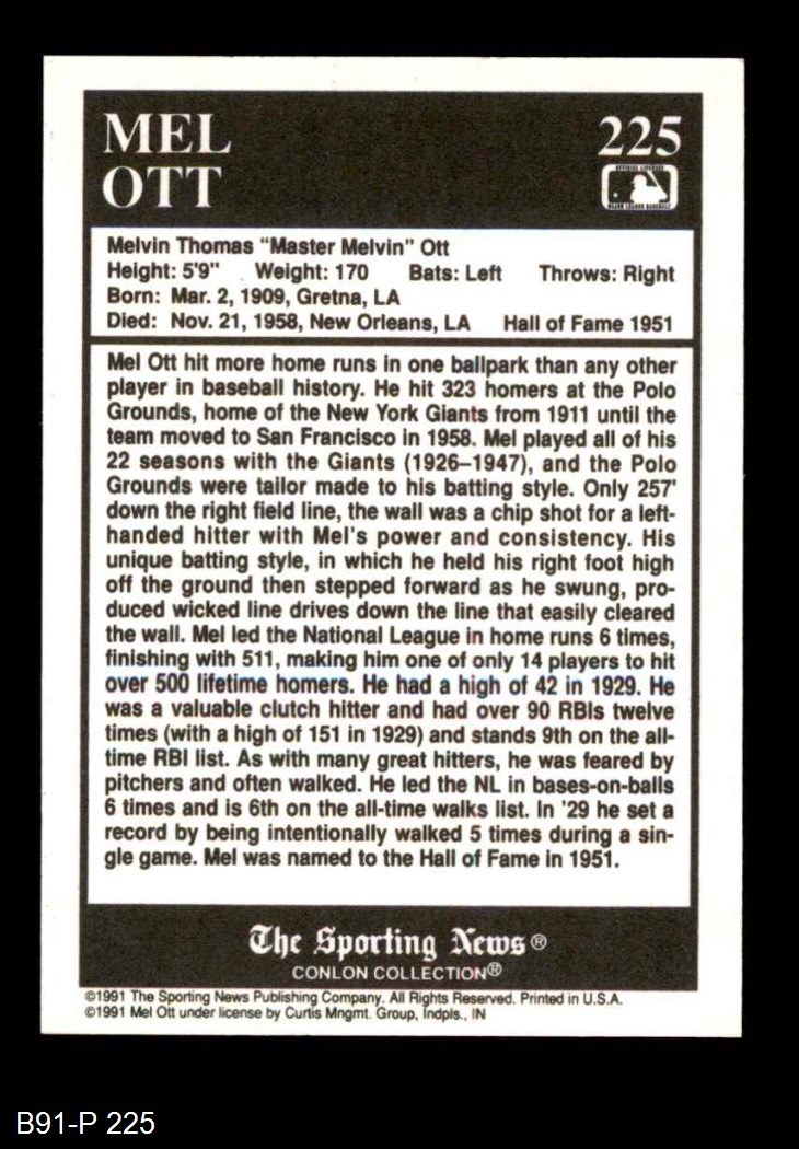 1991 Conlon #225 Mel Ott 8 - NM/MT