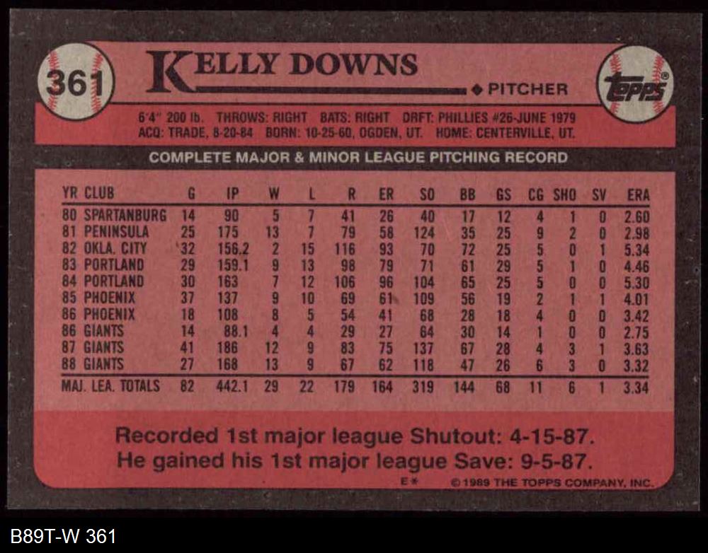 1989 Topps #361 Kelly Downs