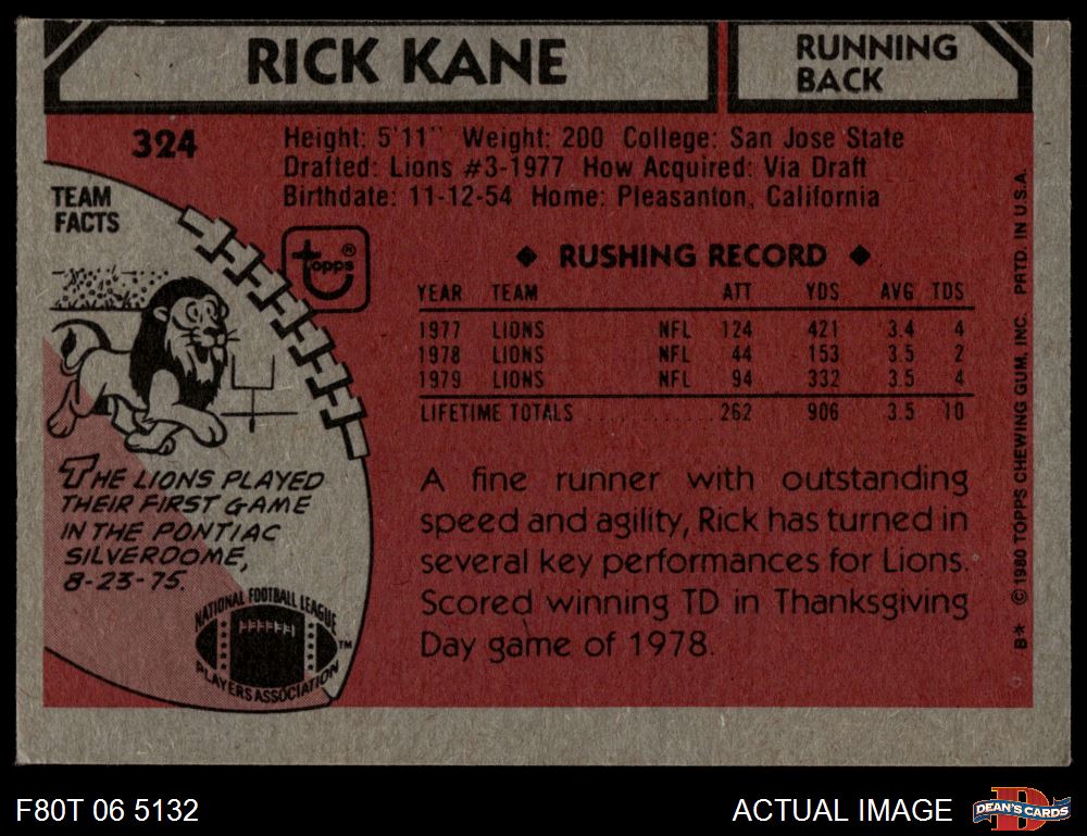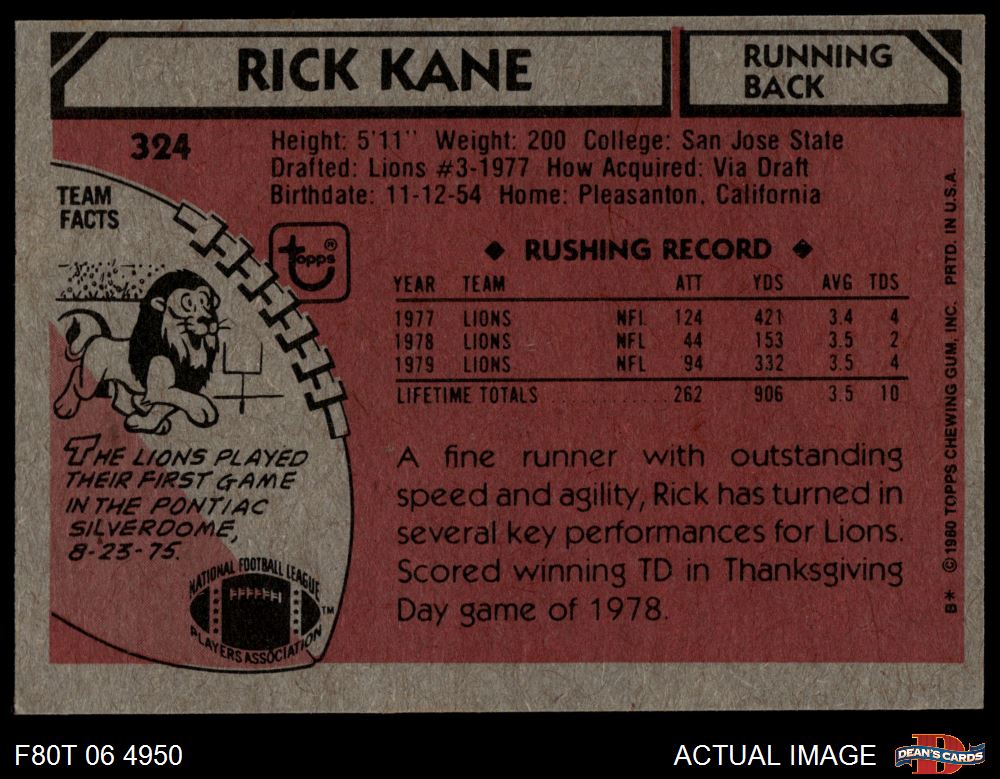 1980 Topps Football Cards (4,332 available)1980 Topps Lions (166 available)