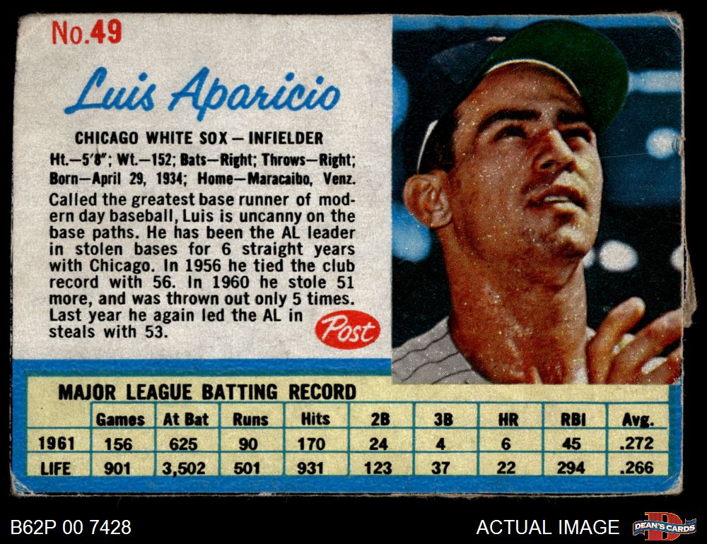 1962 Post Cereal #49 Luis Aparicio 2 - GOOD