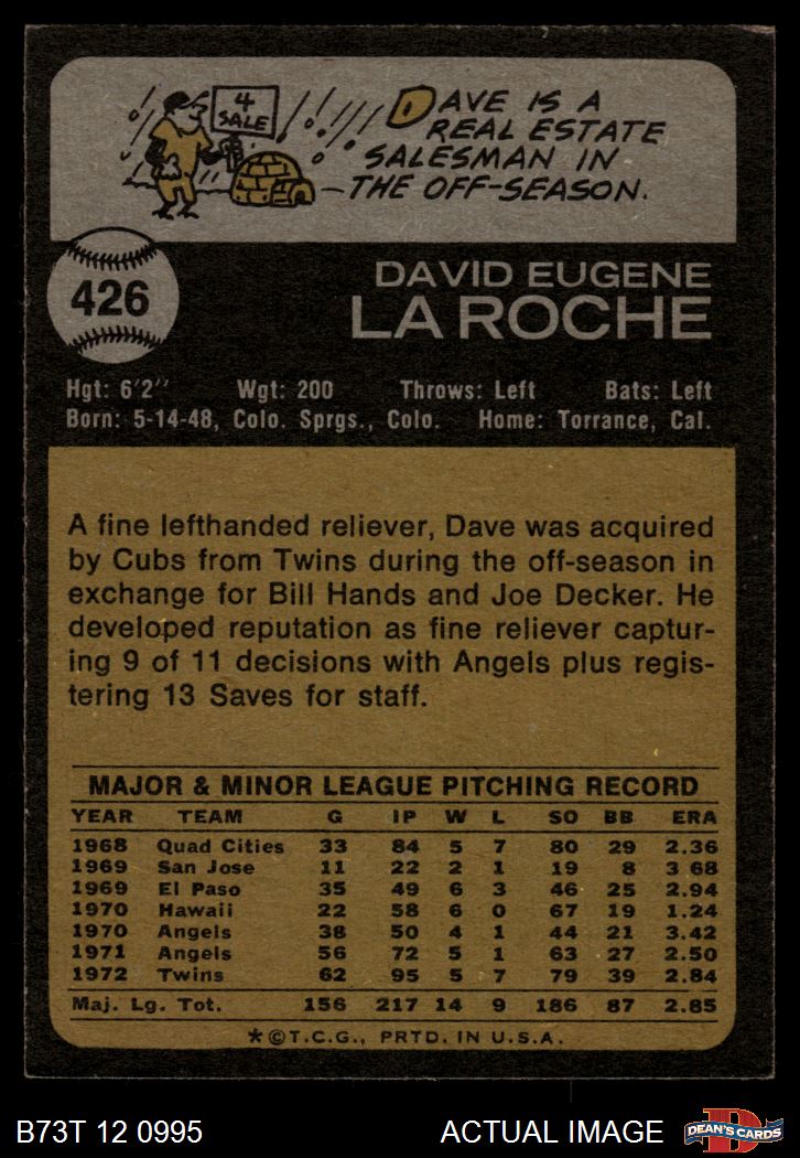 1973 Topps #426 Dave LaRoche 5 - EX