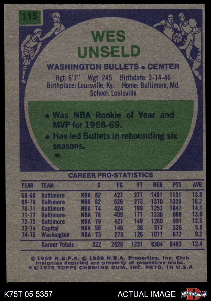 1975-76 Topps Basketball Cards (2,988 available)1975 Topps Bullets (Wizards) (196 available)