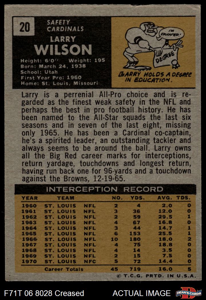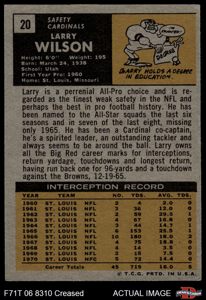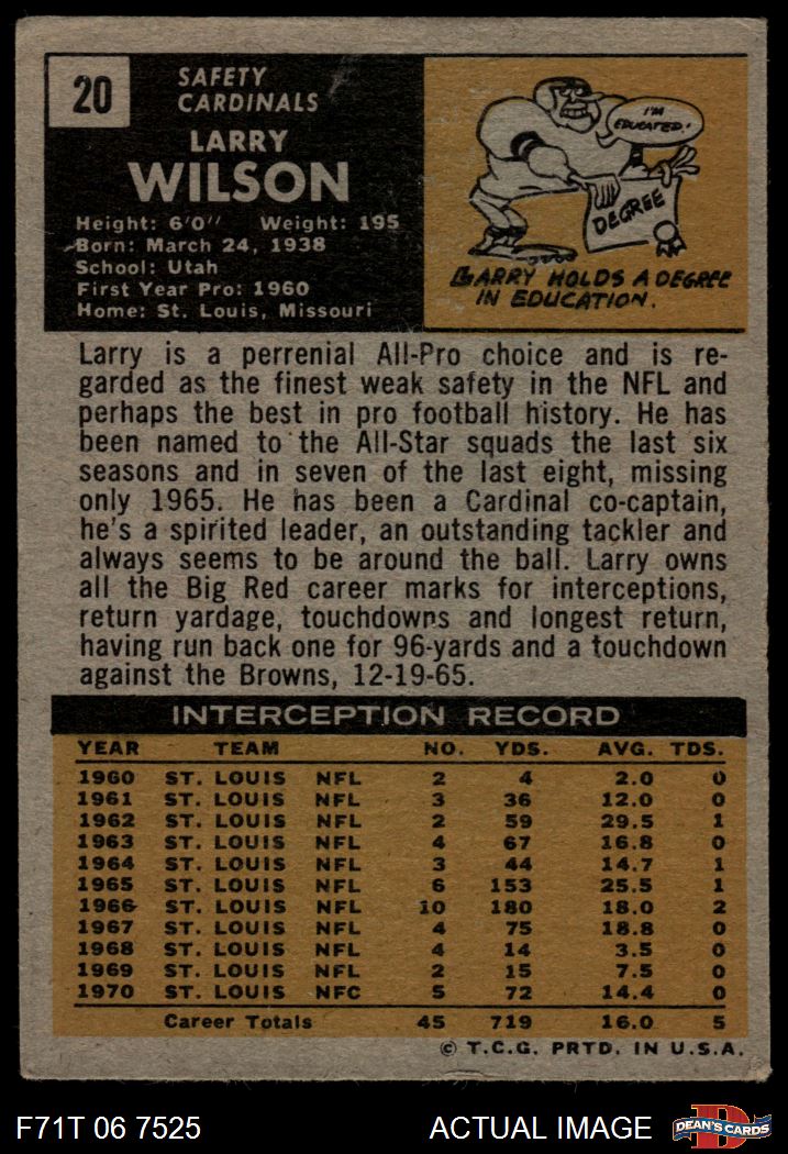 1971 Topps #20 Larry Wilson 3 - VG