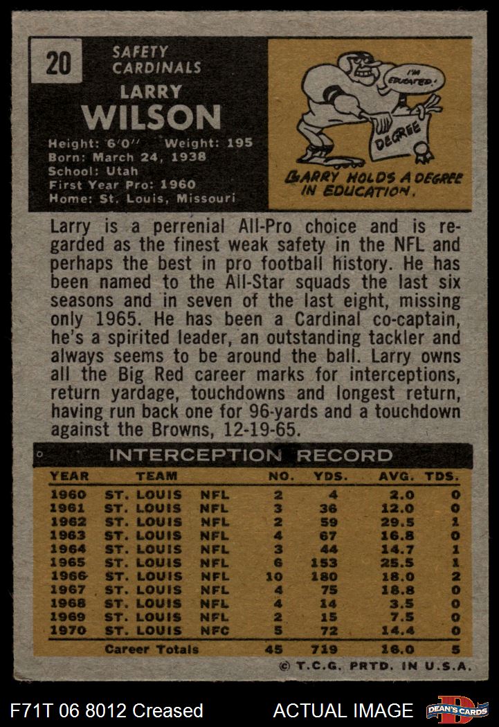 1971 Topps #20 Larry Wilson Front Thumbnail