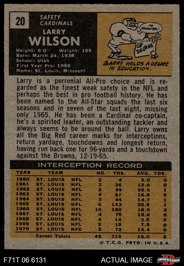 1971 Topps #20 Larry Wilson 6 - EX/MT