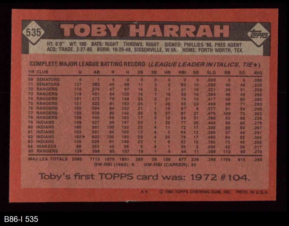 1986 Topps Baseball Cards (4,875 available)1986 Topps Rangers (441 available)
