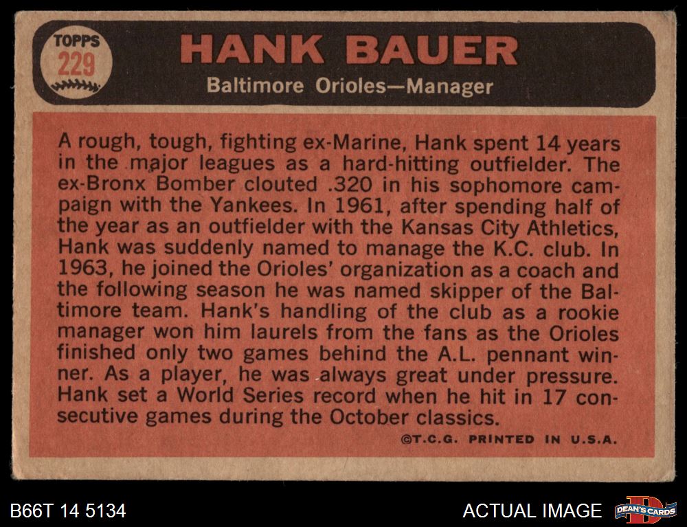 1966 Topps #229 Hank Bauer 1 - POOR