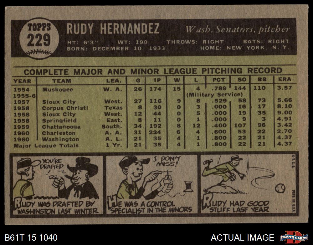 1961 Topps #229 Rudy Hernandez