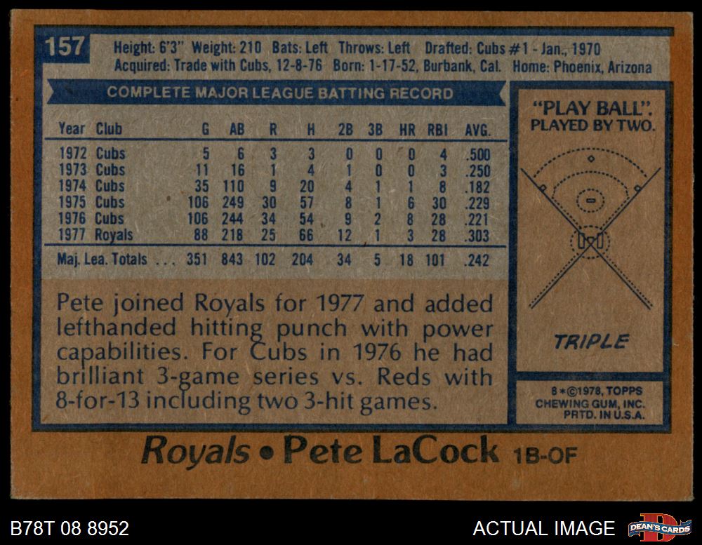 1978 Topps #157 Pete LaCock 4 - VG/EX