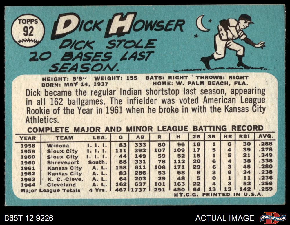 1965 Topps #92 Dick Howser 4.5 - VG/EX+