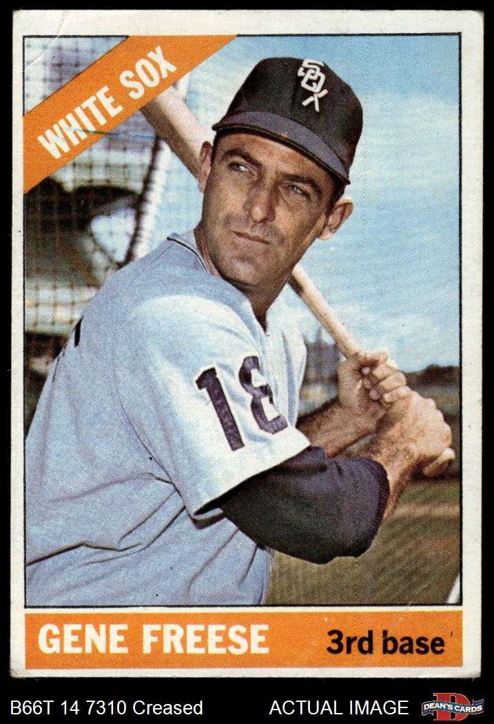 1966 Topps #319 Can have or not have a Horizontal Blue Line by Right Ear that extends into the "H of the Orange Ribbon" Gene Freese 2 - GOOD