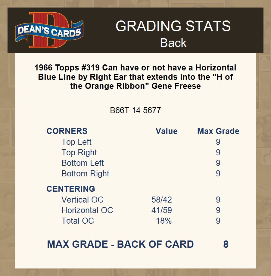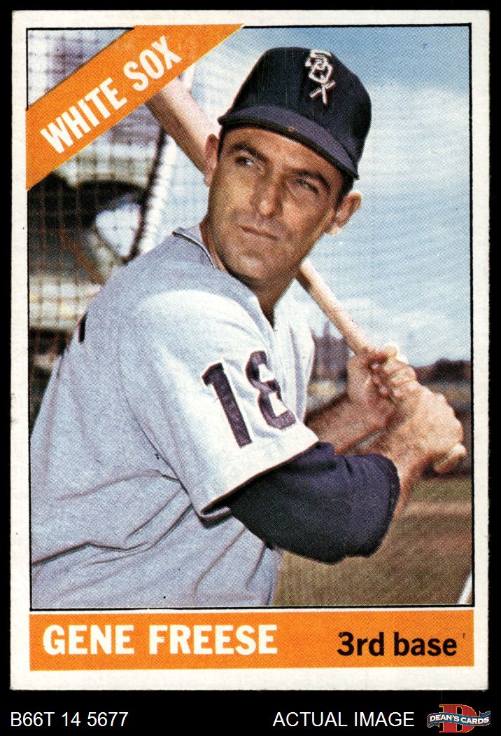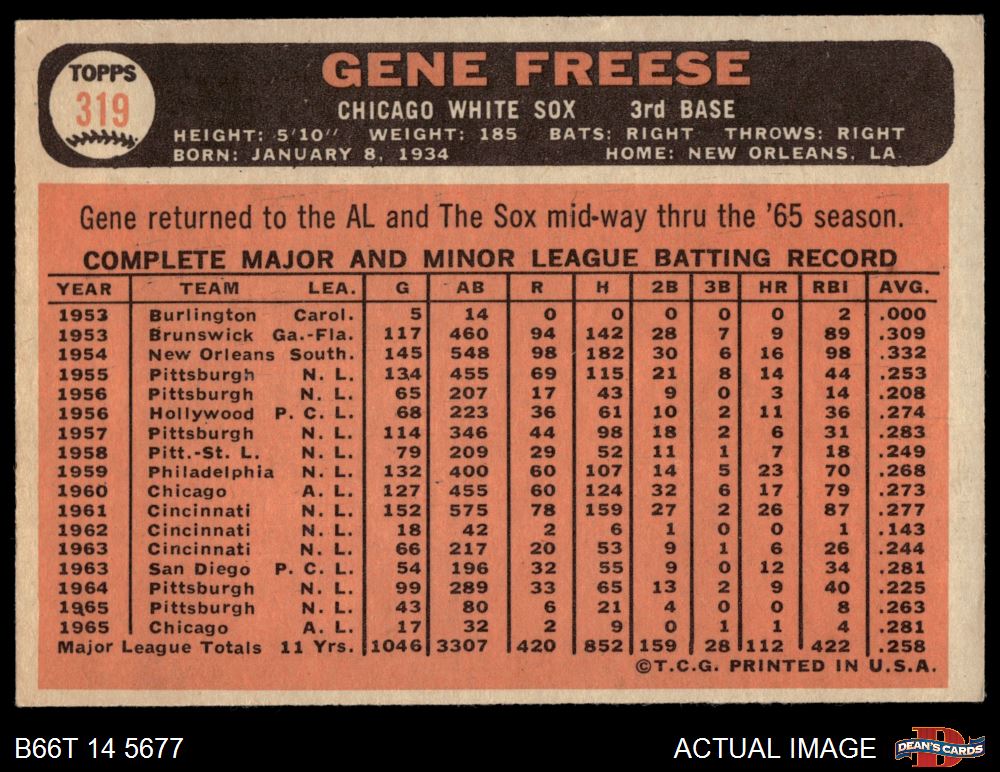 1966 Topps #319 Can have or not have a Horizontal Blue Line by Right Ear that extends into the "H of the Orange Ribbon" Gene Freese 5 - EX
