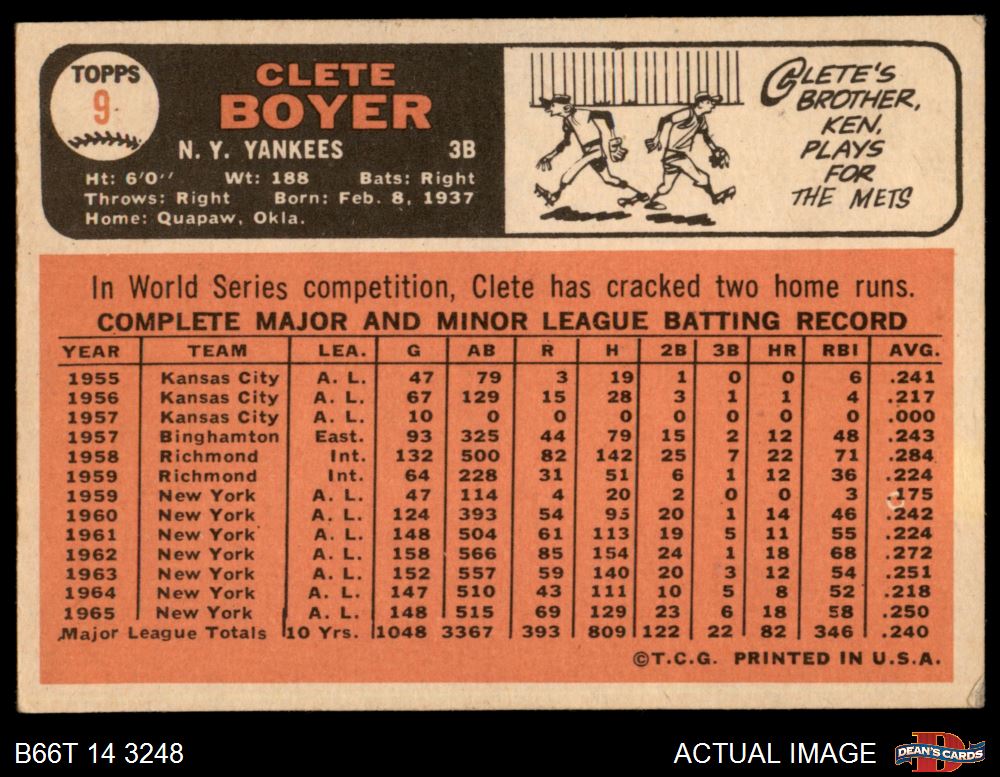 1966 Topps #9 Clete Boyer 4 - VG/EX