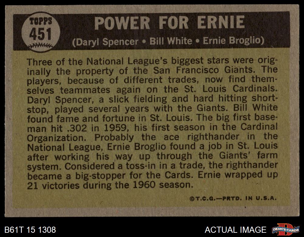 1961 Topps #451 - Daryl Spencer / Bill White / Ernie Broglio Power for Ernie 3.5 - VG+