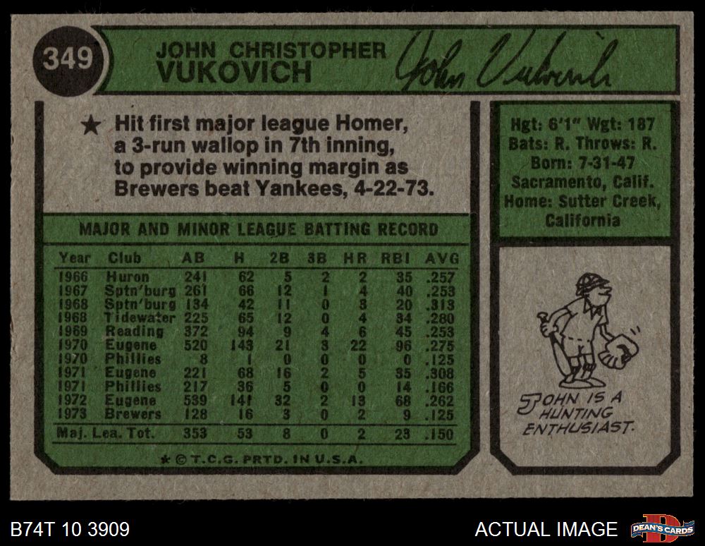 1974 Topps #349 John Vukovich 6 - EX/MT