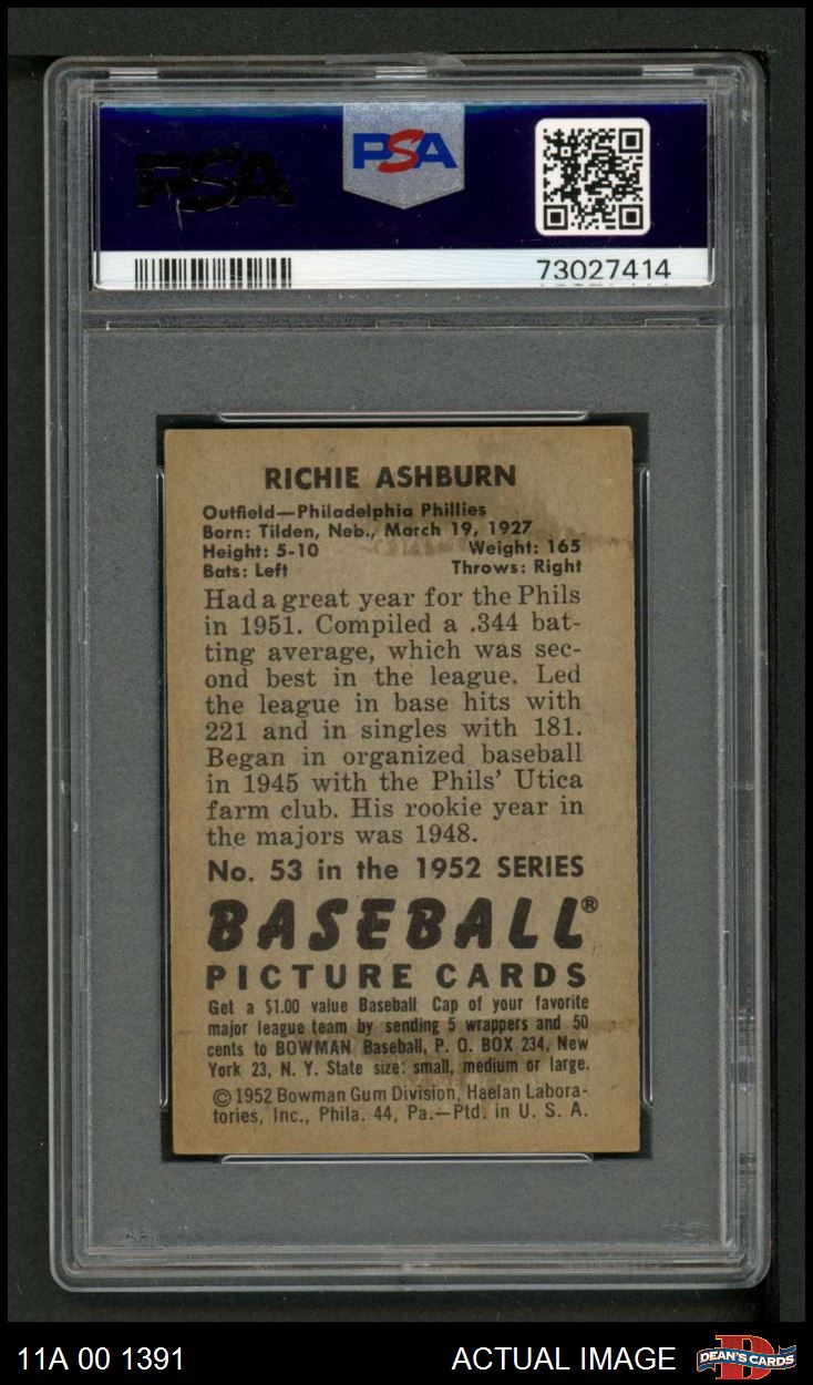 1952 Bowman #53 Richie Ashburn PSA 5 - EX