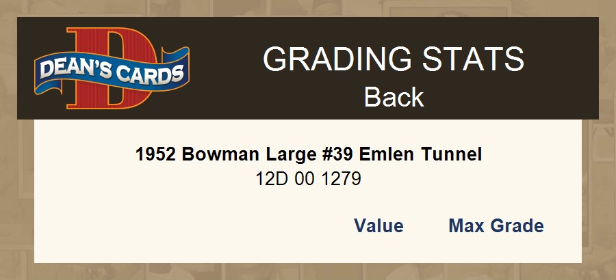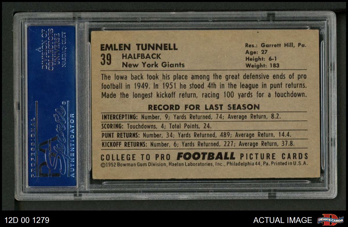 1952 Bowman Large #39 Emlen Tunnel PSA 6 - EX/MT
