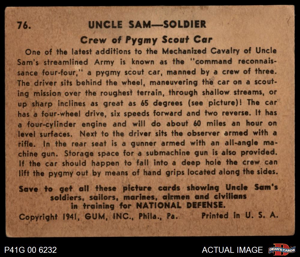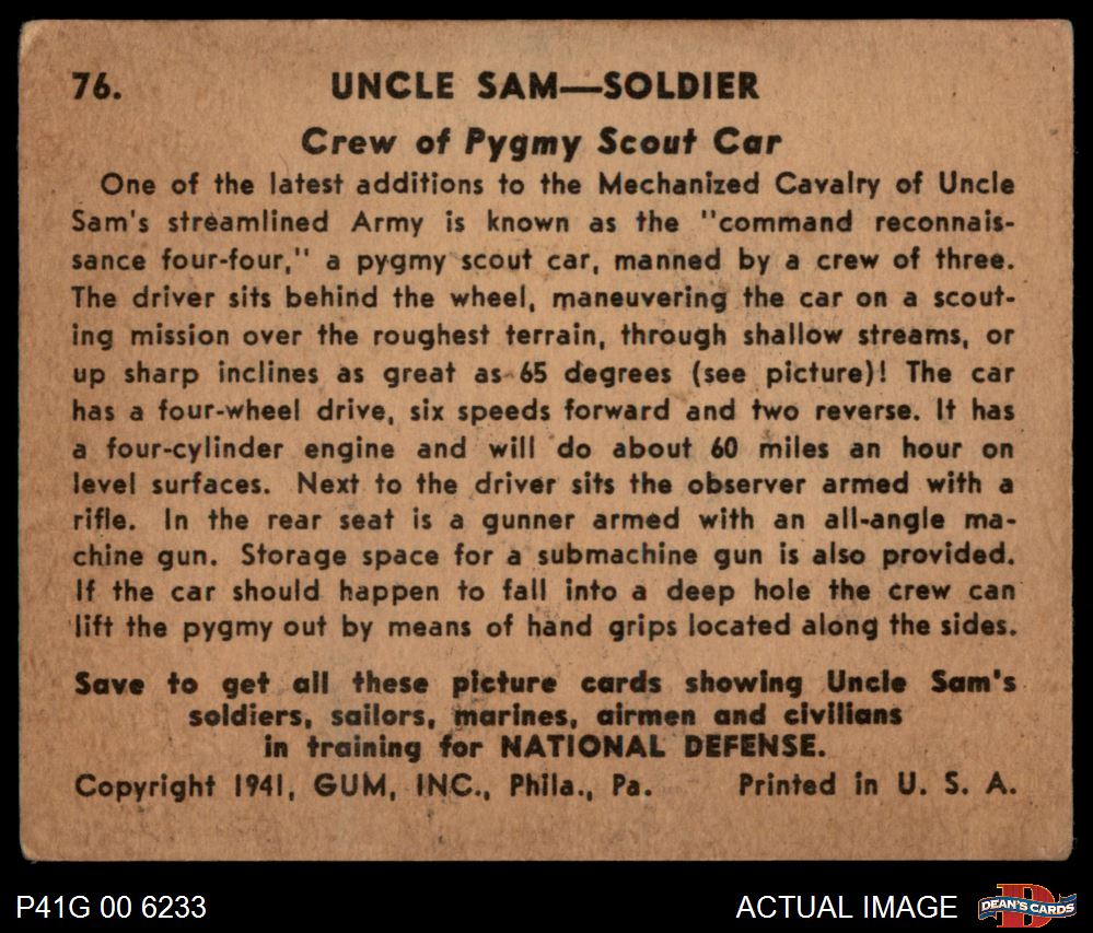 1941 Uncle Sam #76 Crew Of Pygmy Scout Car 1.5 - FAIR
